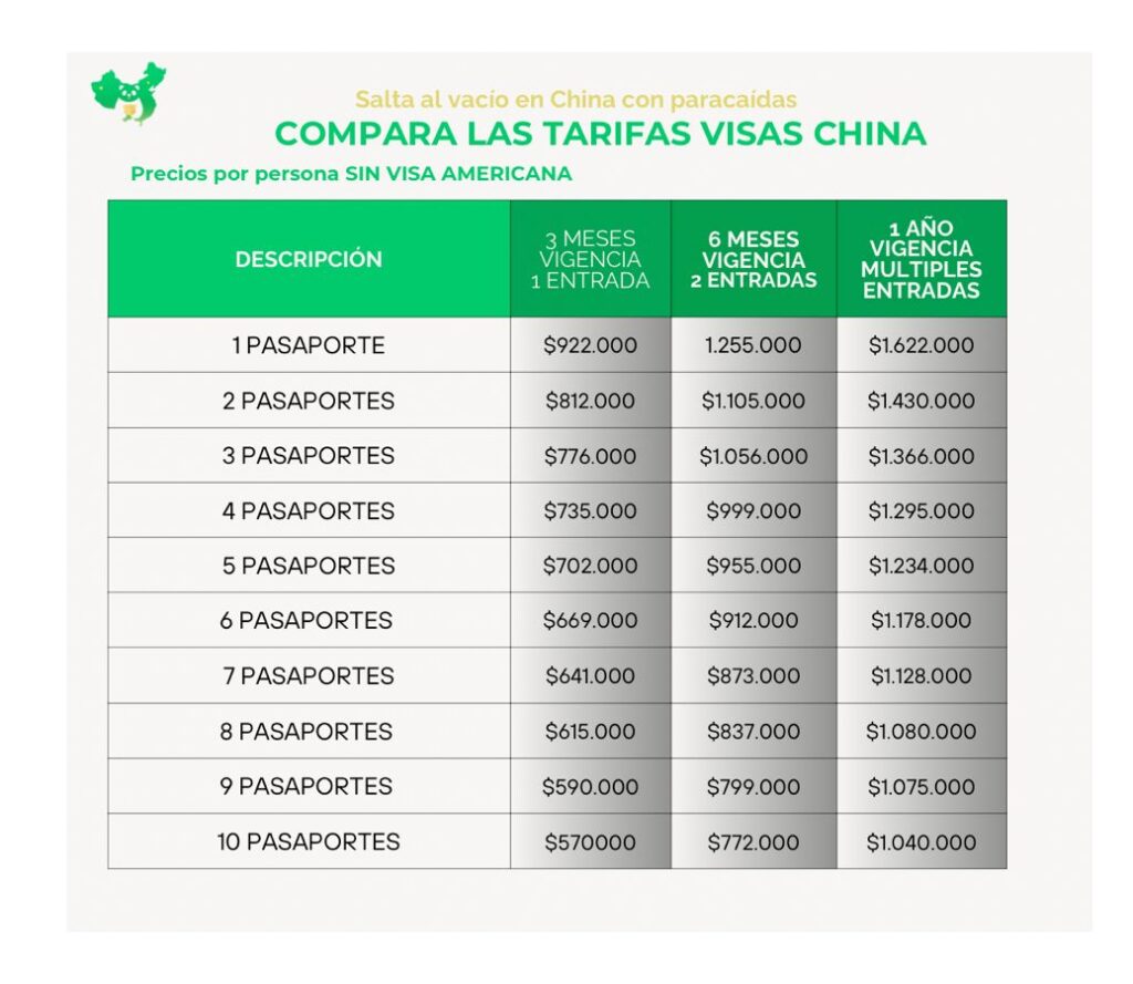 - Foto última visa china que tuvo(si es primera vez no es necesario este ítem).